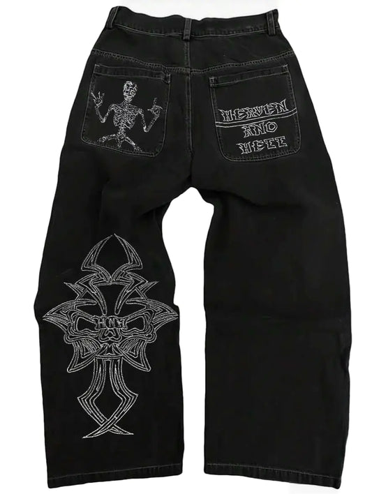 Y2K Beggy Jeans Denim Skull Embroidery Gothic Jeans