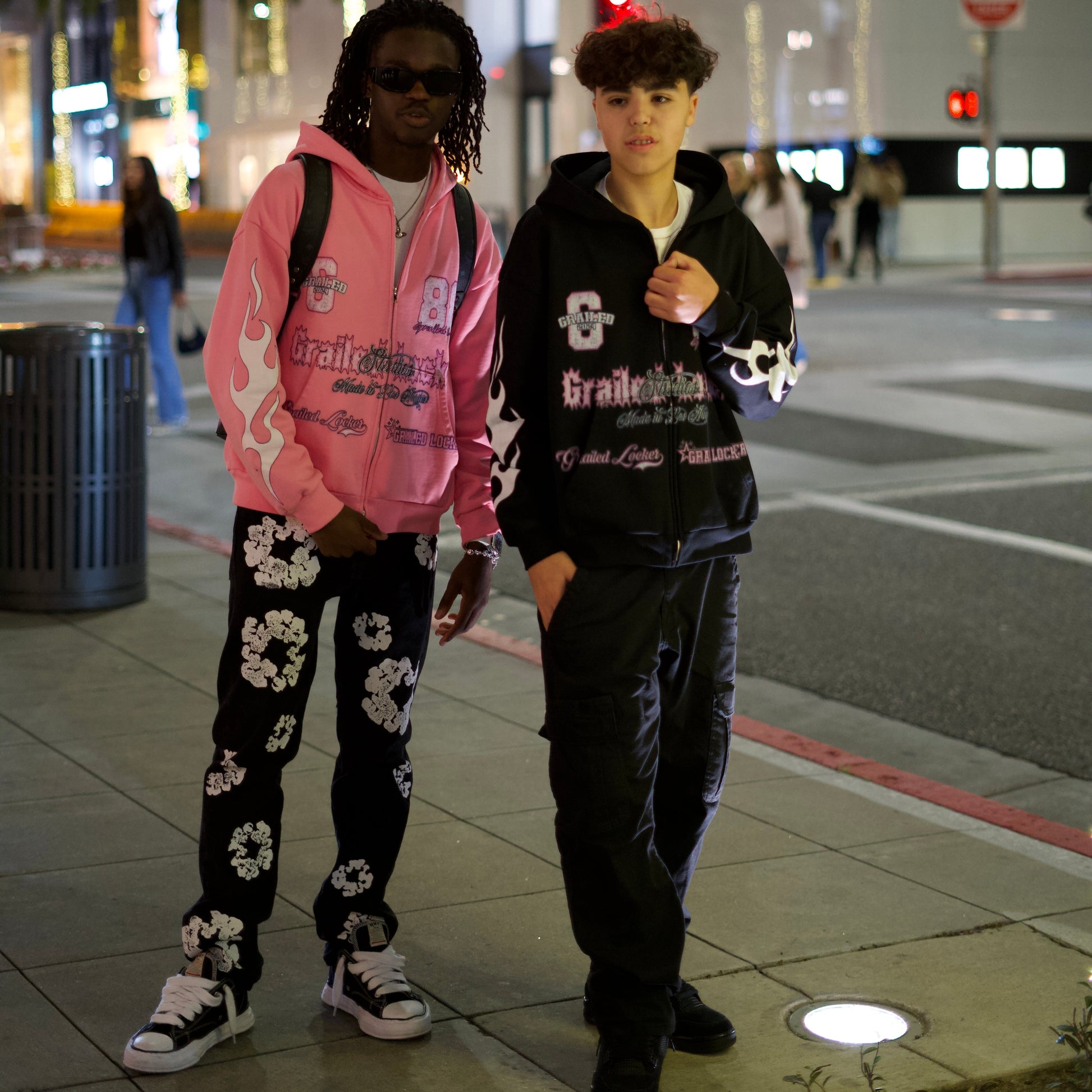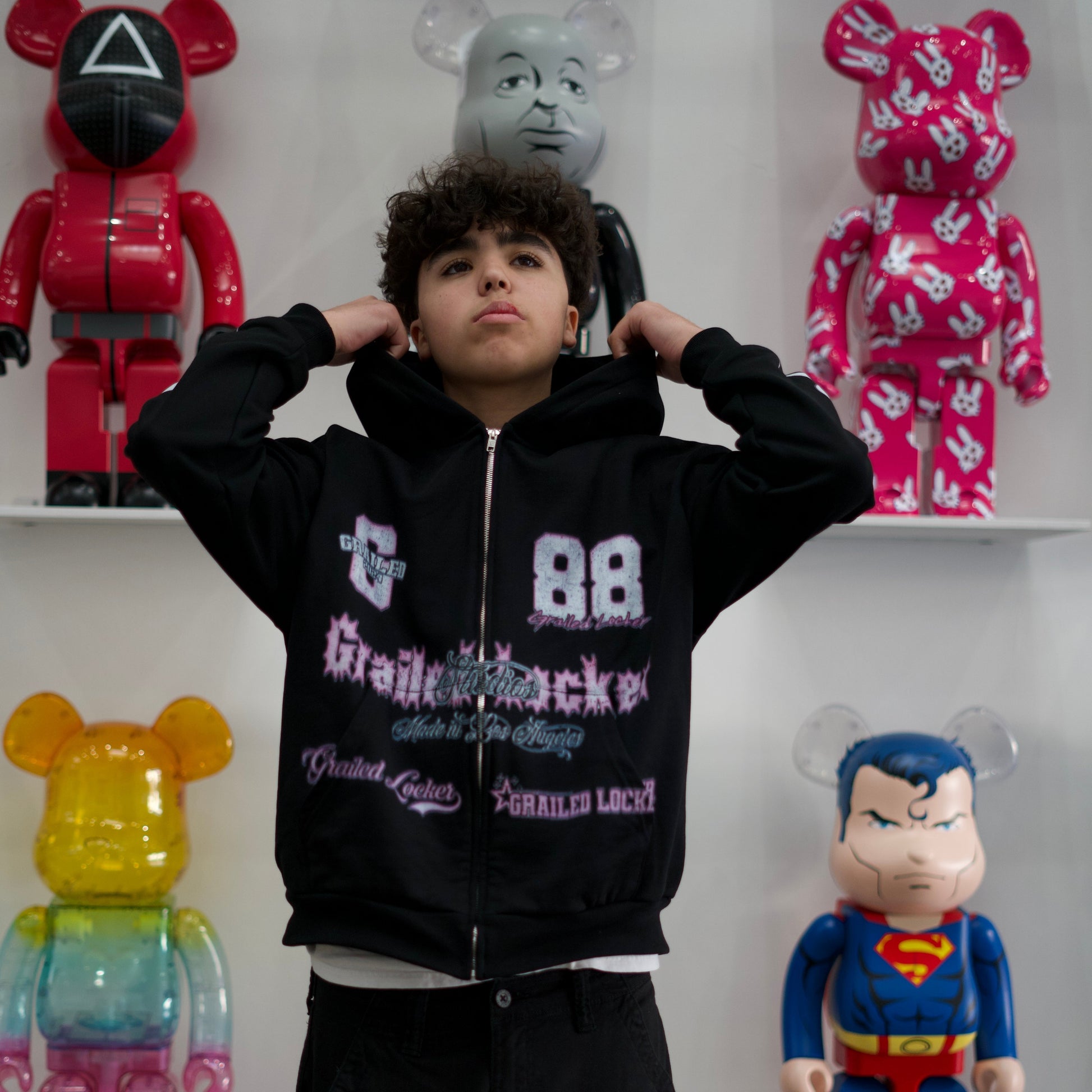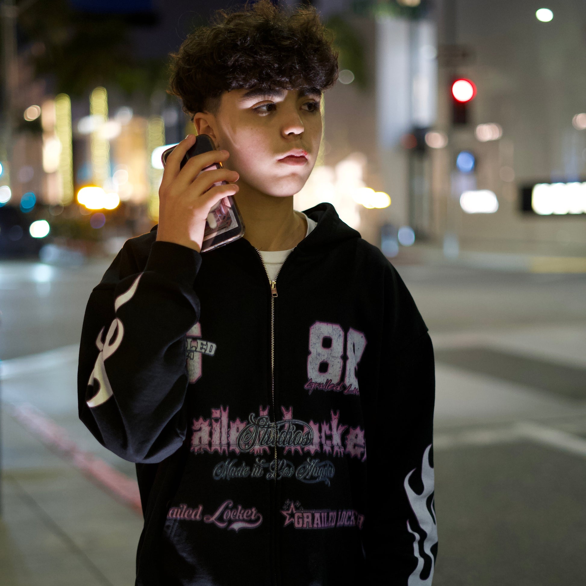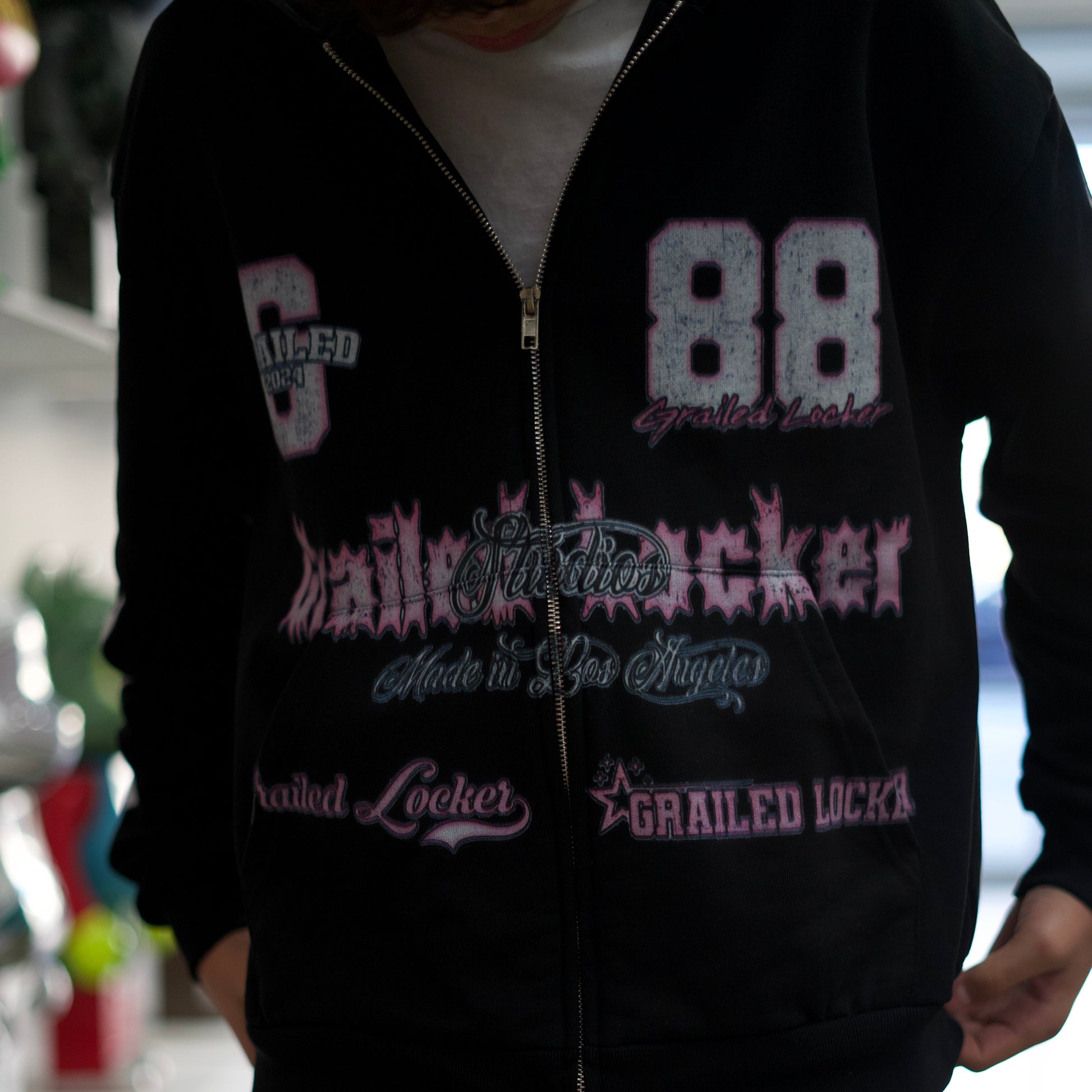 This Black zip-through hoodie made from soft French terry is both comfortable and refined, making it ideal for everyday use. The hoodie also features a unique direct to garment printing on the front and sleeves of the hoodie.